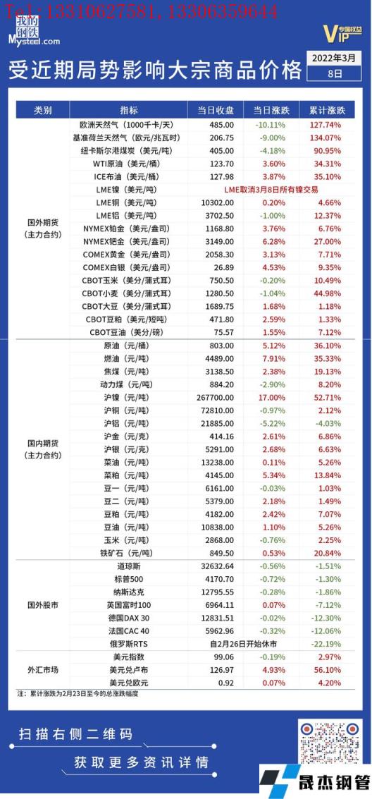 免責聲明:本網站(山東聊城晟杰無縫鋼管廠www.maturesexus.com)刊載的“受近期局勢影響大宗商品價格一覽表(3月8日)”等均源于網絡,版權歸原作者所有,且僅代表原作者觀點,本文所載信息僅供參考。轉載僅為學習與交流之目的,如無意中侵犯您的合法權益,請及時聯系刪除。本網站刊登此篇文章并不意味著本站贊同其觀點或證實其內容的真實性,我們不對其科學性、嚴肅性等作任何形式的保證。如果侵犯了您的版權,請盡快聯系我們予以撤銷,謝謝合作!