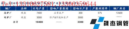 2、湖北省建材無縫厚壁鋼管廠家螺紋鋼日產量3.36萬噸,周環比增加0.37萬噸。停產/不飽和生產影響建材日產量為1.98萬噸,產能利用率63%,周環比增加7%。