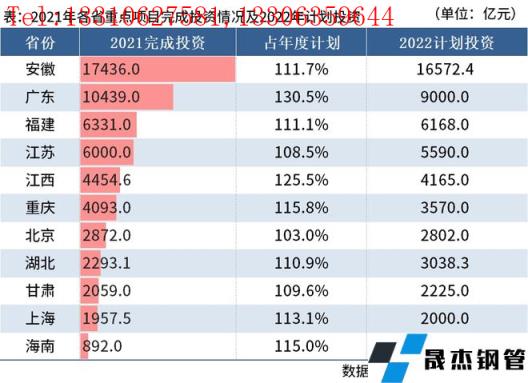 ◎ 據不完全統計,截至3月16日,已有11個省份公布其2021年重點項目完成投資情況和2022年計劃目標。2022年,上述11省份共計劃投資近5.6萬億元,其中安徽省計劃投資超1.65萬億,排名第一。