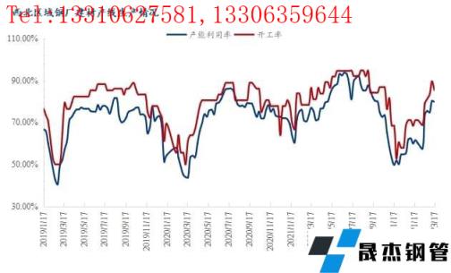 本周西北區(qū)域15家建筑厚壁無縫鋼管生產(chǎn)廠家48條產(chǎn)線實(shí)際開工41條,軋線開工率為85.4%,周環(huán)比下降4%;建材產(chǎn)線實(shí)際產(chǎn)量約66萬噸,周環(huán)比減少約0.5萬噸,產(chǎn)能利用率為79.8%,周環(huán)比下降0.3%,減量部分主要在陜西LG無縫厚壁鋼管廠家高爐停產(chǎn)兩條軋線同步檢修。