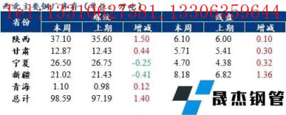 周環(huán)比來看,新疆無縫厚壁鋼管廠家日均產(chǎn)量增長至2.49萬噸,寧夏區(qū)域NXJL棒線日均減量1萬噸外,其余軋線維持不飽和生產(chǎn),甘肅和陜西區(qū)域變化有限;月同比來看,新疆區(qū)域增幅靠前,陜西區(qū)域跌幅較大。年同比來看,寧夏區(qū)域降幅達(dá)四成比例,其余三省變化比例在8%-16%附近。