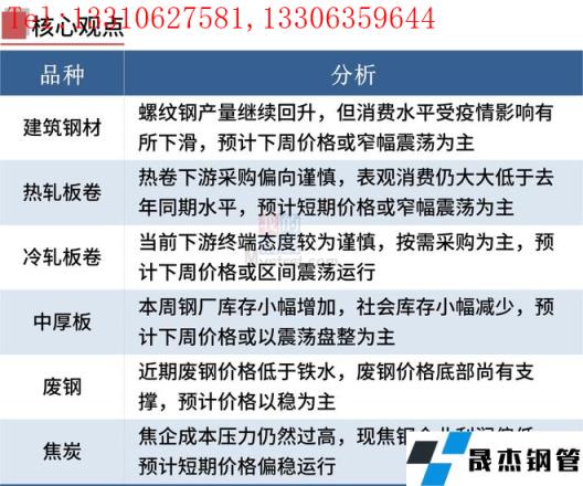 本周?chē)?guó)內(nèi)多地?zé)o縫厚壁鋼管廠家運(yùn)輸受阻,鋼市成交量明顯下滑,短期廠內(nèi)庫(kù)存或進(jìn)一步累積,抑制鋼價(jià)反彈高度。不過(guò),電爐廠已陷入虧損,加之預(yù)期穩(wěn)增長(zhǎng)政策將出,鋼價(jià)底部支撐力度也強(qiáng)。當(dāng)前市場(chǎng)復(fù)雜多變,國(guó)內(nèi)疫情形勢(shì),穩(wěn)增長(zhǎng)政策落實(shí)情況以及國(guó)際局勢(shì)變化仍是主要關(guān)注點(diǎn)。