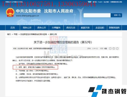 免責聲明:本網站(山東聊城晟杰無縫鋼管廠www.maturesexus.com)刊載的“快訊:沈陽加強疫情管控 所有鋼材_無縫鋼管市場或停止辦公及出庫”等均源于網絡,版權歸原作者所有,且僅代表原作者觀點,本文所載信息僅供參考。轉載僅為學習與交流之目的,如無意中侵犯您的合法權益,請及時聯系刪除。本網站刊登此篇文章并不意味著本站贊同其觀點或證實其內容的真實性,我們不對其科學性、嚴肅性等作任何形式的保證。如果侵犯了您的版權,請盡快聯系我們予以撤銷,謝謝合作!
