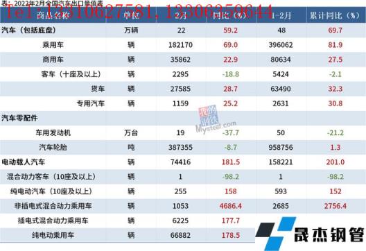 免責(zé)聲明:本網(wǎng)站(山東聊城晟杰無縫鋼管廠www.maturesexus.com)刊載的“海關(guān)總署:2月中國出口汽車22萬輛,同比增59.2%”等均源于網(wǎng)絡(luò),版權(quán)歸原作者所有,且僅代表原作者觀點(diǎn),本文所載信息僅供參考。轉(zhuǎn)載僅為學(xué)習(xí)與交流之目的,如無意中侵犯您的合法權(quán)益,請及時(shí)聯(lián)系刪除。本網(wǎng)站刊登此篇文章并不意味著本站贊同其觀點(diǎn)或證實(shí)其內(nèi)容的真實(shí)性,我們不對其科學(xué)性、嚴(yán)肅性等作任何形式的保證。如果侵犯了您的版權(quán),請盡快聯(lián)系我們予以撤銷,謝謝合作!