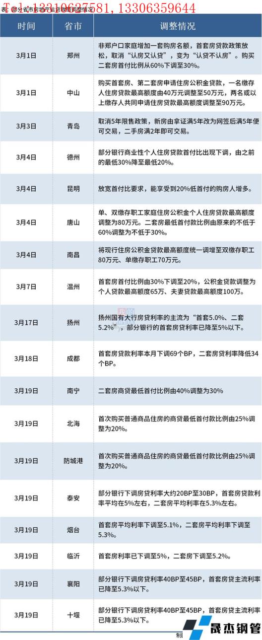 據不完全整理,3月以來,多地陸續調整房地產信貸政策,包括首套房和二套房首付比例下調,提高公積金貸款最高額度,房貸利率下調等。