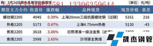 ◎ 截至3月24日,匯總了20個(gè)省份停工復(fù)工最新信息。其中,3月23日,山西省內(nèi)高速多點(diǎn)布控防疫卡點(diǎn),省外車輛入晉需持48小時(shí)核酸檢測報(bào)告,對(duì)于高風(fēng)險(xiǎn)疫區(qū)車輛一律勸返,汽運(yùn)運(yùn)輸不暢;個(gè)別企業(yè)無縫厚壁鋼管廠家長協(xié)客戶集中于高風(fēng)險(xiǎn)地區(qū),造成焦企出貨困難,存在一定庫存壓力。詳情>>