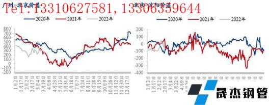 目前北京價格居于低位,不過從南北價差的歷史數(shù)據(jù)來看,廣州-北京價差不足300元/噸,也屬于偏低水平;雖然目前東北區(qū)域價格略高于北京,但是東北區(qū)域受疫情影響較大,汽運運輸受阻,資源消化艱難,其中沈陽建筑厚壁無縫鋼管市場庫存量已經(jīng)創(chuàng)出有調研數(shù)據(jù)以來的峰值,市場有一定的庫存壓力,因此在華南價格優(yōu)勢不大,又在緩解東北區(qū)域壓力的前提下,北京以及京津冀其他區(qū)域仍是東北區(qū)域無縫厚壁鋼管廠家(凌鋼、新?lián)徜摰龋┵Y源輸送的主要區(qū)域。