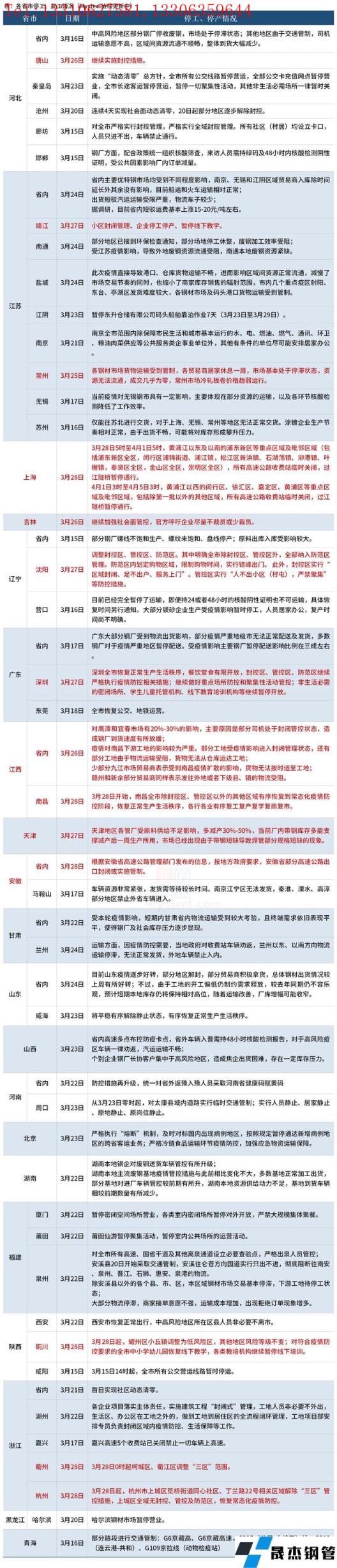 免責聲明:本網站(山東聊城晟杰無縫鋼管廠www.maturesexus.com)刊載的“疫情防控下,各省停工復工最新情況匯總(十)”等均源于網絡,版權歸原作者所有,且僅代表原作者觀點,本文所載信息僅供參考。轉載僅為學習與交流之目的,如無意中侵犯您的合法權益,請及時聯系刪除。本網站刊登此篇文章并不意味著本站贊同其觀點或證實其內容的真實性,我們不對其科學性、嚴肅性等作任何形式的保證。如果侵犯了您的版權,請盡快聯系我們予以撤銷,謝謝合作!