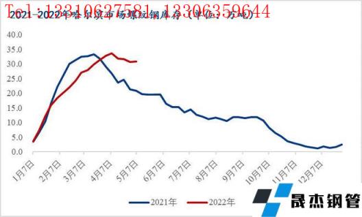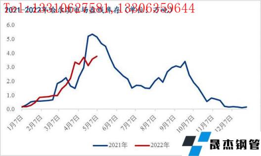 5月4月哈爾濱市場螺紋庫存約30.9萬噸同比增加10.0萬噸環比增加0.2萬噸、盤線約3.8萬噸同比減少1.4萬噸同比增加0.2萬噸,目前螺紋庫存為近四年來的高位水平,且在連續去庫三周后出現小幅增庫,除節日期間無縫厚壁鋼管廠家到貨增加以外,主要還是需求啟動緩慢、成交偏淡所致。