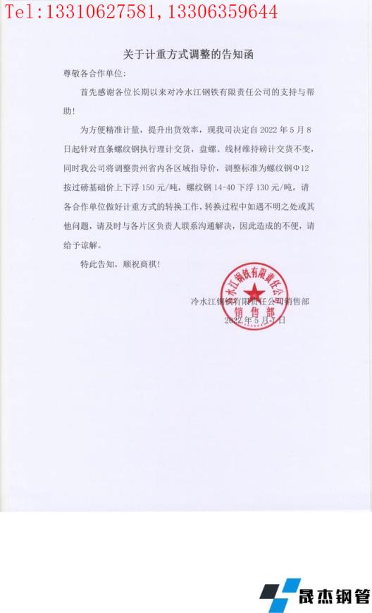 免責聲明:本網站(山東聊城晟杰無縫鋼管廠www.maturesexus.com)刊載的“冷水江鋼鐵有限責任公司關于對貴州區域計重方式調整的告知函”等均源于網絡,版權歸原作者所有,且僅代表原作者觀點,本文所載信息僅供參考。轉載僅為學習與交流之目的,如無意中侵犯您的合法權益,請及時聯系刪除。本網站刊登此篇文章并不意味著本站贊同其觀點或證實其內容的真實性,我們不對其科學性、嚴肅性等作任何形式的保證。如果侵犯了您的版權,請盡快聯系我們予以撤銷,謝謝合作!