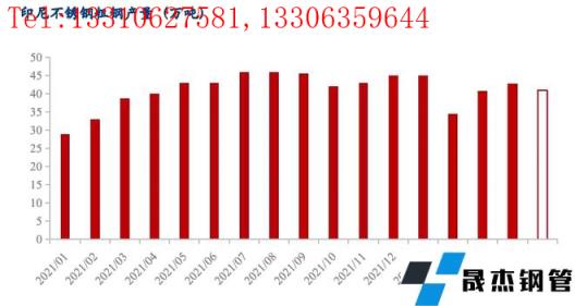 印尼方面,2022年4月份印尼不銹鋼粗鋼產(chǎn)量42.7萬噸(300系),月環(huán)比增4.91%,年同比增6.75%。
