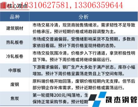 冷軋板卷:5月7日,全國24個主要城市1.0mm冷卷均價5651元/噸,較上個交易日下跌24元/噸。期貨大幅下跌,市場交投氛圍驟然冷清,價格步入下行通道。下游“買漲不買跌”心態明顯,拿貨積極性明顯下降。預計下周國內冷軋板卷價格或將繼續偏弱運行。