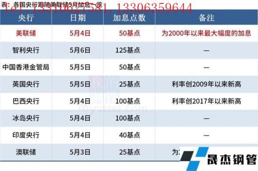 據不完全統(tǒng)計,截至發(fā)稿,5月已有6家央行跟隨美聯儲腳步加息,1家央行先于美聯儲一天加息。具體如下: