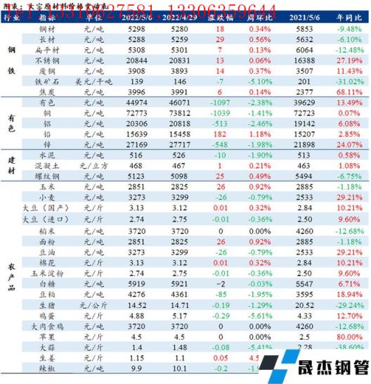 免責聲明:本網站(山東聊城晟杰無縫鋼管廠www.maturesexus.com)刊載的“周報:大宗工業原材料、能源及農產品價格周報(4.29-5.06)”等均源于網絡,版權歸原作者所有,且僅代表原作者觀點,本文所載信息僅供參考。轉載僅為學習與交流之目的,如無意中侵犯您的合法權益,請及時聯系刪除。本網站刊登此篇文章并不意味著本站贊同其觀點或證實其內容的真實性,我們不對其科學性、嚴肅性等作任何形式的保證。如果侵犯了您的版權,請盡快聯系我們予以撤銷,謝謝合作!