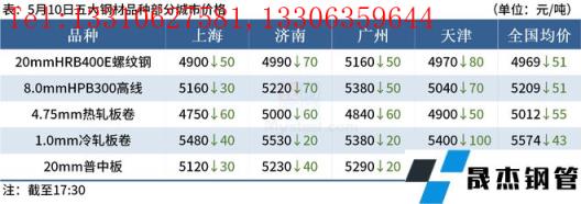 ◎5月10日焦炭市場偏弱運行,部分無縫厚壁鋼管廠家開啟第二輪降價,降幅為200元/噸,主流無縫厚壁鋼管廠家暫觀望為主。焦炭開工小幅微增,場內(nèi)基本零庫存運行,即產(chǎn)即銷,多以積極出貨為主。詳情>>