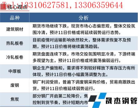 熱軋板卷:5月10日,全國24個主要城市4.75mm熱軋板卷均價5012元/噸,較上個交易日下跌55元/噸。受昨日夜盤影響,現(xiàn)貨市場早盤開始,貿(mào)易商悲觀情緒濃厚,午后盤面尾盤有小幅拉升,華東區(qū)域現(xiàn)貨價格也隨之小幅回調(diào),但成交寥寥無幾。整體來看,國內(nèi)目前疫情對運(yùn)輸影響依然較大,華東區(qū)域解封仍需一段時間,整體需求恢復(fù)不及預(yù)期,預(yù)計11日熱卷現(xiàn)貨市場價格將繼續(xù)震蕩趨弱。