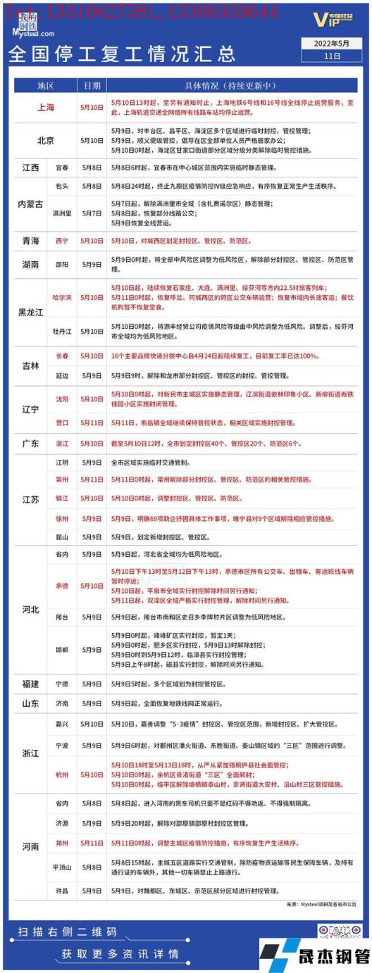 免責聲明:本網站(山東聊城晟杰無縫鋼管廠www.maturesexus.com)刊載的“疫情影響丨全國停工復工情況匯總(5月11日)”等均源于網絡,版權歸原作者所有,且僅代表原作者觀點,本文所載信息僅供參考。轉載僅為學習與交流之目的,如無意中侵犯您的合法權益,請及時聯系刪除。本網站刊登此篇文章并不意味著本站贊同其觀點或證實其內容的真實性,我們不對其科學性、嚴肅性等作任何形式的保證。如果侵犯了您的版權,請盡快聯系我們予以撤銷,謝謝合作!