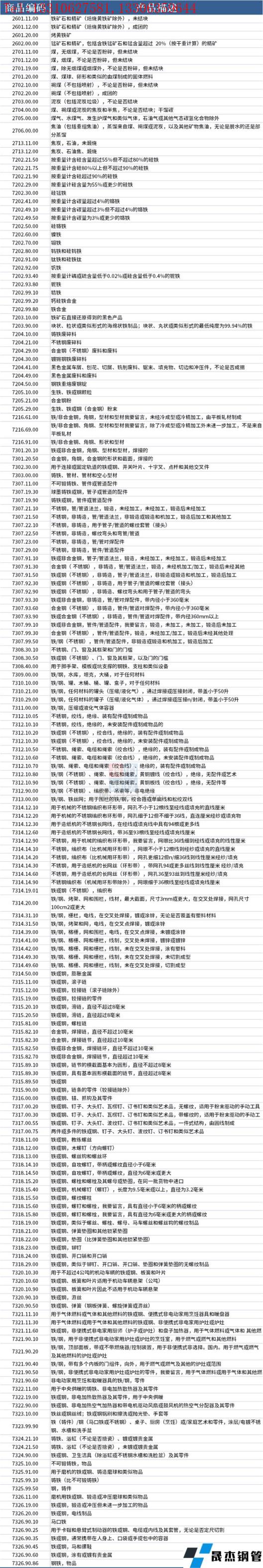 據不完全整理,美國征收中國產品關稅的清單,涉及鋼鐵類產品如下: