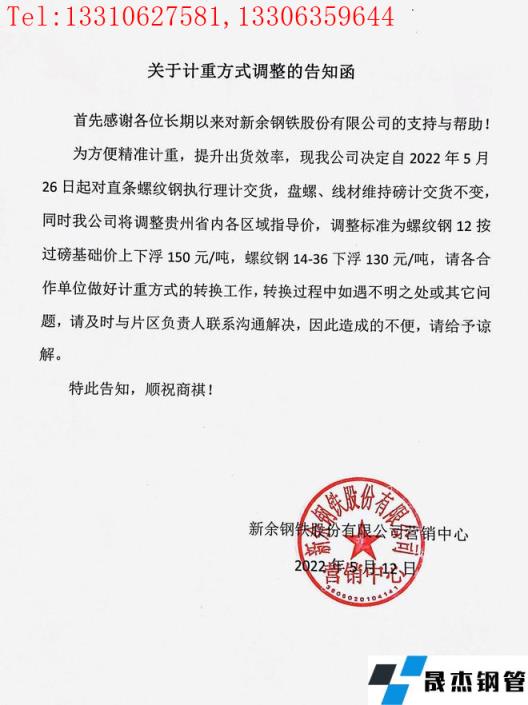 免責聲明:本網站(山東聊城晟杰無縫鋼管廠www.maturesexus.com)刊載的“新余鋼鐵股份有限公司關于對貴州區域計重方式調整的告知函”等均源于網絡,版權歸原作者所有,且僅代表原作者觀點,本文所載信息僅供參考。轉載僅為學習與交流之目的,如無意中侵犯您的合法權益,請及時聯系刪除。本網站刊登此篇文章并不意味著本站贊同其觀點或證實其內容的真實性,我們不對其科學性、嚴肅性等作任何形式的保證。如果侵犯了您的版權,請盡快聯系我們予以撤銷,謝謝合作!