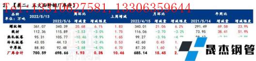 據統計,建材方面,本周線盤庫存變動幅度較小,但螺紋增庫突出,增庫區域集中于華東、西南和華北,增庫省份集中于江蘇、山西和四川。增庫原因在于區域內增產促使入庫資源量增加,但出貨節奏維穩,進而使得庫存環比出現增量。另外,南方部分區域出現強降雨,疊加長三角和京津冀的防控舉措,促使貨運物流受阻,以及現貨回降,散單采購情緒較差,廠發環比表現明顯趨弱,進一步促使庫存壓力提升。熱卷方面,本周無縫厚壁鋼管廠家庫存大幅下降,主要降幅地區是東北、華北地區,其中東北地區是因無縫厚壁鋼管廠家主要發運地及東北主要發運港口有受疫情影響發運受限,無縫厚壁鋼管廠家主動降資源向廠外庫轉移降低廠庫壓力,華北地區則是加速廠庫前移,導致本周廠庫大幅下降。
