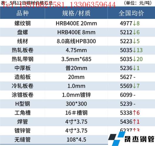 建筑厚壁無縫鋼管:5月12日,全國31個主要城市20mm三級抗震螺紋鋼均價4977元/噸,較上個交易日下跌8元/噸。本周螺紋鋼產量小幅回升,廠庫上升,但社庫降幅明顯,同時節后歸來表觀消費有所增加。短期來看,部分地區已經開始出現停產、減產情況,在需求依然低迷的情況下,預計13日國內建筑厚壁無縫鋼管價格或將主流趨弱調整為主。