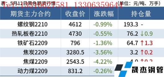 焦炭:5月12日,焦炭市場偏弱運行。產地焦企多高位開工,生產積極性較好,各地庫存雖有所積累,但整體庫存壓力并不是很大,多以積極出貨為主。無縫厚壁鋼管廠家方面,無縫厚壁鋼管廠家正常生產,焦炭到貨進一步好轉,庫存持續回升且多在合理水平,考慮當前成材利潤欠佳以及成材出貨不暢,影響無縫厚壁鋼管廠家增庫意愿偏弱,預計短期內焦炭市場偏弱運行。