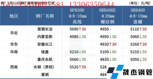 ◎ 據不完全統計,截至5月12日,國內7家無縫厚壁鋼管廠家發布檢修計劃。其中,檢修時間最長的是沙鋼 ,2500m3*1高爐檢修31天,共計影響鐵水產量20.15萬噸。詳情>>