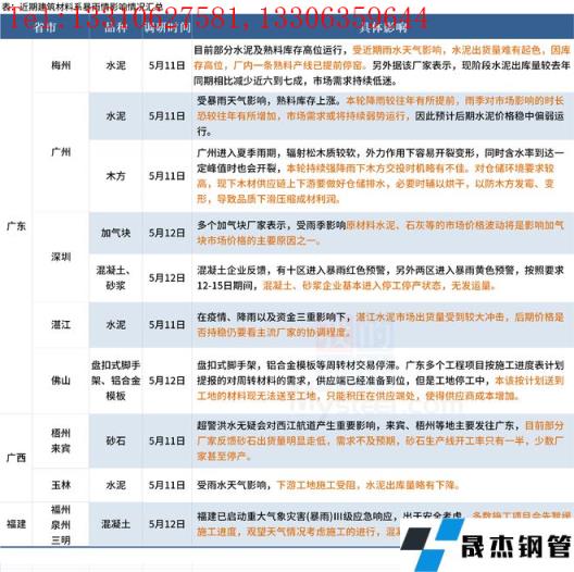 ◎ 截至5月12日,據百年建筑網調研,華南3省建材市場和建筑工地進度受到天氣影響明顯。