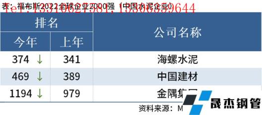 免責聲明:本網站(山東聊城晟杰無縫鋼管廠www.maturesexus.com)刊載的“中國3家水泥企業上榜福布斯2022全球企業2000強”等均源于網絡,版權歸原作者所有,且僅代表原作者觀點,本文所載信息僅供參考。轉載僅為學習與交流之目的,如無意中侵犯您的合法權益,請及時聯系刪除。本網站刊登此篇文章并不意味著本站贊同其觀點或證實其內容的真實性,我們不對其科學性、嚴肅性等作任何形式的保證。如果侵犯了您的版權,請盡快聯系我們予以撤銷,謝謝合作!