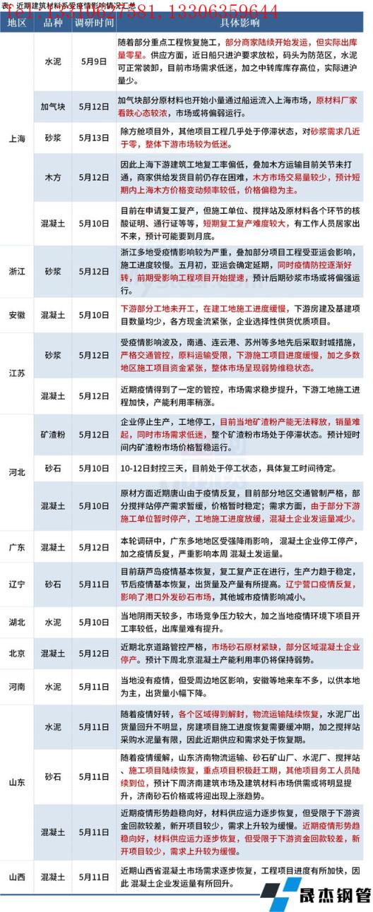 截至5月13日,據(jù)百年建筑網(wǎng)調(diào)研,12個(gè)省份建材市場(chǎng)受到了不同程度的影響。近期上海目前對(duì)全市建筑工地開(kāi)展階梯式分類管理,重點(diǎn)聚焦涉疫工地,完善各項(xiàng)疫情防控措施,盡快實(shí)現(xiàn)建筑工地社會(huì)面清零,為建筑工地全面復(fù)工復(fù)產(chǎn)奠定基礎(chǔ)。加之近期華南地區(qū)雨水天氣來(lái)臨,運(yùn)輸和終端施工進(jìn)度受限,因此建材行情弱勢(shì)運(yùn)行。待全國(guó)疫情和汛期有所好轉(zhuǎn),公路、高速等基建項(xiàng)目支撐起一定需求,部分材料的發(fā)運(yùn)量會(huì)有所提升。具體情況如下: