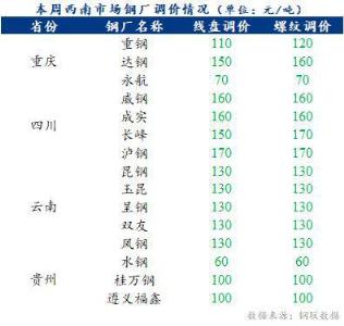 本周四川省部分城市放寬購房政策,重慶將迎來汛期,云南推進減產控產進度,貴州推進過磅改理計; 本周鋼價持續弱勢運行,無縫厚壁鋼管廠家利潤明顯收縮,下游需求未有明顯改善,西南無縫厚壁鋼管廠家庫存整體小幅增加。