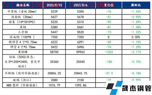 截止2022年5月13日,各原材料當日即時價格以及價格周環比情況如下: