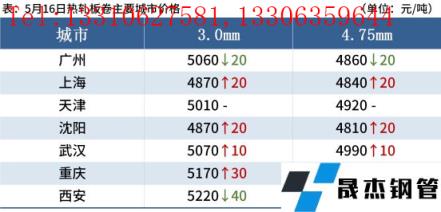 熱軋板卷:5月16日,全國24個主要城市4.75mm熱軋板卷均價5013元/噸,較上個交易日下跌8元/噸。受期貨盤面的影響午后價格小幅上揚,但成交普遍一般,看弱情緒仍在部分蔓延,商家多數(shù)仍謹慎操作,預計17日全國熱軋板卷價格將呈現(xiàn)小幅上漲的態(tài)勢。