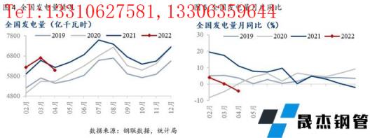2022年4月份,全國生產原煤同比增長10.7%。4月我國進口煤同比增長8.4。4月我國用電同比增速回落1.3%,主要是受第二、三產業(yè)用電量同比下滑拖累,發(fā)電量同比下降4.3%。