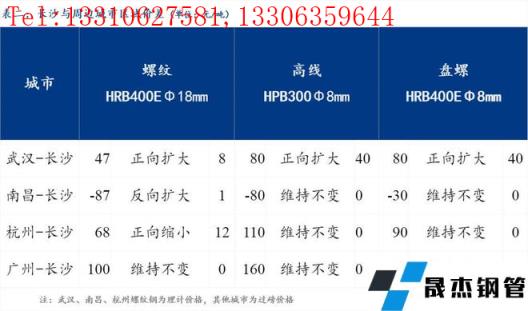 統一為理計單位后,武漢高于長沙47元/噸,南昌低于長沙87元/噸,杭州高于長沙68元/噸,廣州高于長沙100元/噸。