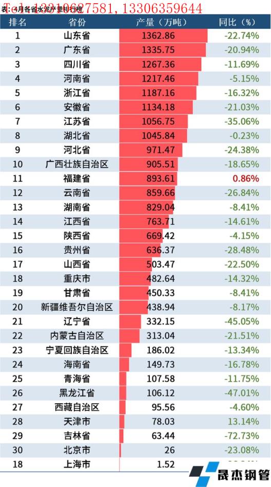 免責聲明:本網站(山東聊城晟杰無縫鋼管廠www.maturesexus.com)刊載的“統計局:前4月全國分省市水泥產量出爐,粵川蘇皖降超10%”等均源于網絡,版權歸原作者所有,且僅代表原作者觀點,本文所載信息僅供參考。轉載僅為學習與交流之目的,如無意中侵犯您的合法權益,請及時聯系刪除。本網站刊登此篇文章并不意味著本站贊同其觀點或證實其內容的真實性,我們不對其科學性、嚴肅性等作任何形式的保證。如果侵犯了您的版權,請盡快聯系我們予以撤銷,謝謝合作!
