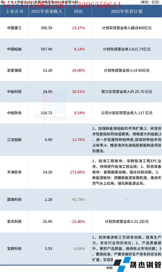 10大上市船企2022年經(jīng)營(yíng)計(jì)劃以及2021年船舶類(lèi)業(yè)務(wù)完成具體情況如下: