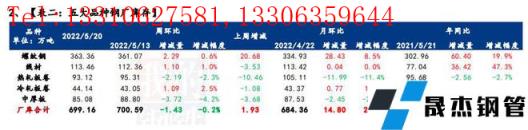 據統計,建材方面,分品種看,螺紋鋼除華東、華中和東北,其余均有增庫;線盤除東北和西南,其余區域廠庫均有少量上升。綜合來看,139口徑因各區域增減庫存幅度均不大,故廠庫環比微增。熱卷方面,本周無縫厚壁鋼管廠家庫存繼續下降,主要降幅地區是西南、華中地區,無縫厚壁鋼管廠家加速發貨,其他地區變動不大小幅降庫。綜合來看,本周降庫主因集中于供應減量,入庫資源減少,出庫維穩的情況下,廠庫環比下降;以及庫存壓力大,加快庫存前移的節奏。增庫的主因集中于需求不佳,采購量有限,無縫厚壁鋼管廠家發貨不暢,促使廠庫環比上升。