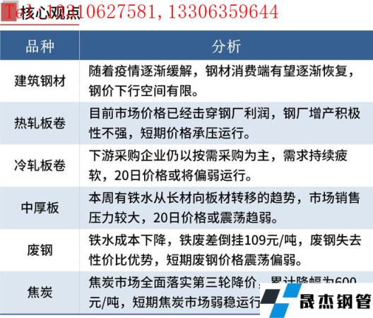 目前大部分電弧爐無縫厚壁鋼管廠家處于虧損狀態(tài),華南地區(qū)獨立電弧爐建筑厚壁無縫鋼管無縫厚壁鋼管廠家平均噸鋼虧損超190元/噸,預(yù)計后期厚壁無縫鋼管供給進一步收縮。焦炭三輪降價之后,焦企已無多余利潤,焦企抵觸降價情緒增加。短期內(nèi)鋼價仍處于震蕩尋底階段,但不宜過度悲觀,包括上海等多地疫情已得到有效控制,一旦需求修復(fù),鋼價仍有反彈可能。