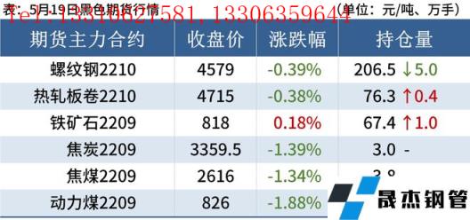 熱軋板卷:5月19日,全國24個主要城市4.75mm熱軋板卷均價4924元/噸,較上個交易日下跌43元/噸。近期相關(guān)重點城市疫情得到不同程度的好轉(zhuǎn),但市場需求依然有明顯承壓,還沒出現(xiàn)明顯改善,但目前市場價格已經(jīng)擊穿無縫厚壁鋼管廠家利潤,無縫厚壁鋼管廠家增產(chǎn)積極性不強,短期供給依然將維持相對低位。另外今日數(shù)據(jù)發(fā)布,本周熱軋無縫厚壁鋼管廠家產(chǎn)量下降0.89萬噸,廠庫下降2.19萬噸,社庫下降3.29萬噸,表需繼續(xù)下降,整體來看短期成材依然將承壓運行。
