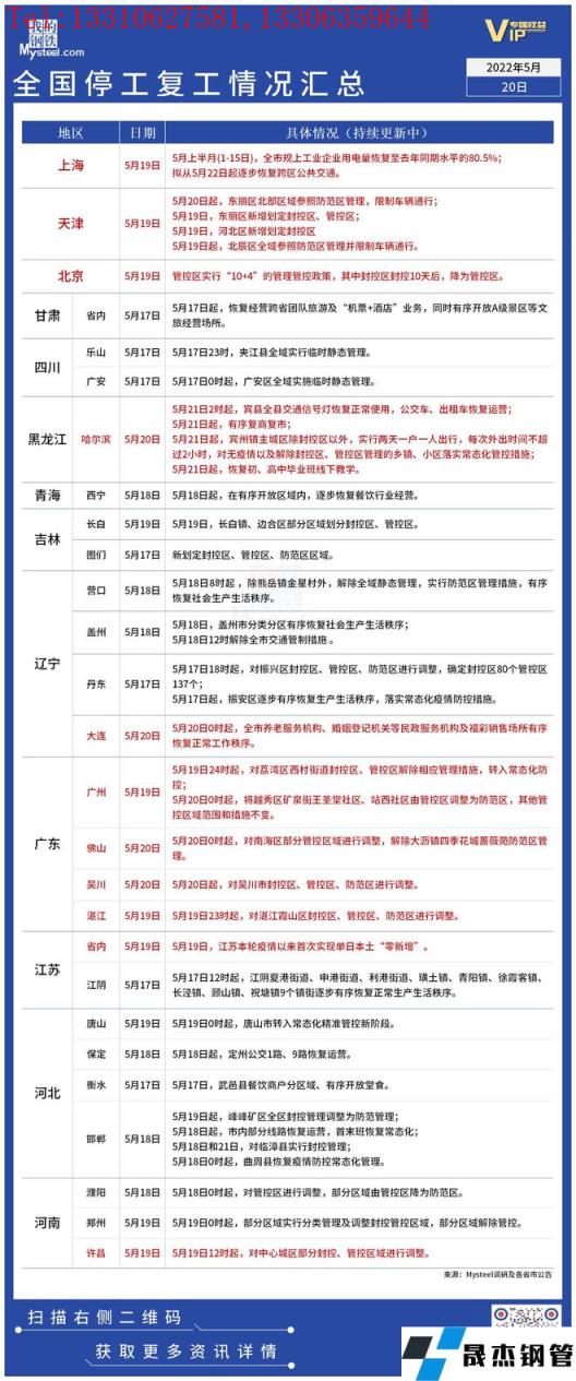 免責聲明:本網站(山東聊城晟杰無縫鋼管廠www.maturesexus.com)刊載的“疫情影響丨全國停工復工情況匯總(5月20日)”等均源于網絡,版權歸原作者所有,且僅代表原作者觀點,本文所載信息僅供參考。轉載僅為學習與交流之目的,如無意中侵犯您的合法權益,請及時聯系刪除。本網站刊登此篇文章并不意味著本站贊同其觀點或證實其內容的真實性,我們不對其科學性、嚴肅性等作任何形式的保證。如果侵犯了您的版權,請盡快聯系我們予以撤銷,謝謝合作!