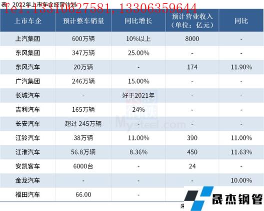 12家上市車企2022年經(jīng)營計劃具體情況如下: