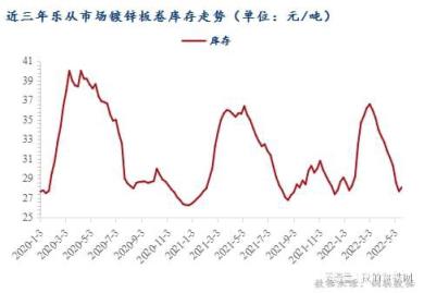 截止5月20日,據調研,樂從市場鍍鋅板卷現貨庫存28.1萬噸,較上周上漲0.4萬噸,也是迎來二季度首次庫存拐點,主要還是由于有花資源持續到貨。