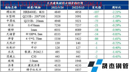 免責聲明:本網站(山東聊城晟杰無縫鋼管廠www.maturesexus.com)刊載的“建筑原材料周報(5.16-5.20)”等均源于網絡,版權歸原作者所有,且僅代表原作者觀點,本文所載信息僅供參考。轉載僅為學習與交流之目的,如無意中侵犯您的合法權益,請及時聯系刪除。本網站刊登此篇文章并不意味著本站贊同其觀點或證實其內容的真實性,我們不對其科學性、嚴肅性等作任何形式的保證。如果侵犯了您的版權,請盡快聯系我們予以撤銷,謝謝合作!