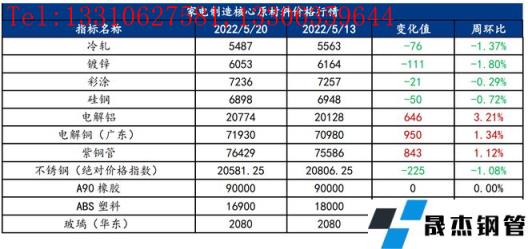 免責聲明:本網站(山東聊城晟杰無縫鋼管廠www.maturesexus.com)刊載的“家電原材料周報(5.16-5.20)”等均源于網絡,版權歸原作者所有,且僅代表原作者觀點,本文所載信息僅供參考。轉載僅為學習與交流之目的,如無意中侵犯您的合法權益,請及時聯系刪除。本網站刊登此篇文章并不意味著本站贊同其觀點或證實其內容的真實性,我們不對其科學性、嚴肅性等作任何形式的保證。如果侵犯了您的版權,請盡快聯系我們予以撤銷,謝謝合作!