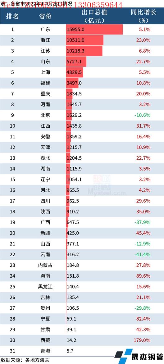 免責聲明:本網站(山東聊城晟杰無縫鋼管廠www.maturesexus.com)刊載的“前4月全國分省市外貿數據出爐,19地出口增速超10%”等均源于網絡,版權歸原作者所有,且僅代表原作者觀點,本文所載信息僅供參考。轉載僅為學習與交流之目的,如無意中侵犯您的合法權益,請及時聯系刪除。本網站刊登此篇文章并不意味著本站贊同其觀點或證實其內容的真實性,我們不對其科學性、嚴肅性等作任何形式的保證。如果侵犯了您的版權,請盡快聯系我們予以撤銷,謝謝合作!