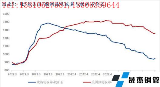雖然4月上旬全球成品鋼價(jià)格延續(xù)上漲,致使北美、歐洲、土耳其等主要產(chǎn)鋼國日均產(chǎn)量小幅上漲(3-5%),但4月下旬成品鋼跌幅明顯大于原材料尤其是鐵礦石下跌幅度。表5為近三月美國和歐洲熱卷價(jià)格與鐵礦石價(jià)差,該價(jià)差僅取主流價(jià)格且未經(jīng)嚴(yán)格計(jì)算不代表生產(chǎn)成本,僅作利潤變化的趨勢參考??梢姎W洲熱軋板卷與鐵礦石價(jià)差在3月中下旬達(dá)到高點(diǎn)后,在整個(gè)4、5月份連續(xù)下降,相比之下該價(jià)差在美國的降幅相對較小。