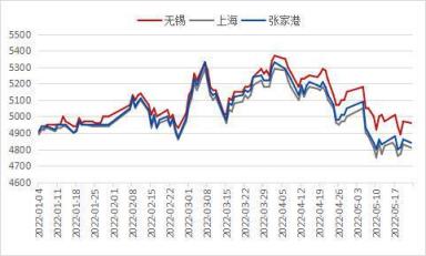 從資源量來看,無錫市場資源量整體來看是處于下降態勢的,而周邊蘇州玖隆庫的資源量從年初的十幾萬噸一直上升到5月初的歷年高峰64萬噸,從5月份蘇州解封以來,面臨爆倉的玖隆庫才逐漸降庫,調研5月25號玖隆庫存在53萬噸,一個月內降了有11萬噸,從沙鋼的降庫資源流向來看,主要分布在揚州、鎮江、蘇州、常州各地,本地無錫市場有商戶近期訂單也增加了不少沙鋼資源,后續資源可能也面臨累庫的風險。