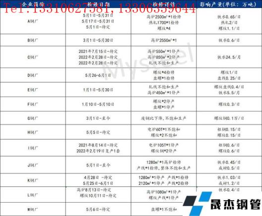 江蘇無(wú)縫厚壁鋼管廠家本周影響產(chǎn)量小幅減少,共計(jì)13家無(wú)縫厚壁鋼管廠家非正常生產(chǎn),較上周檢修停產(chǎn)鋼企數(shù)量持平,目前鐵水影響產(chǎn)量較上周增加0.6萬(wàn)噸 /日,粗鋼影響產(chǎn)量較上周減少0.3萬(wàn)噸 /日,成材影響產(chǎn)量減少增加1.55萬(wàn)噸 /日。5月22日,印度政府出臺(tái)針對(duì)鋼鐵原料及產(chǎn)品的進(jìn)出口關(guān)稅調(diào)整政策。將焦煤、焦炭的進(jìn)口稅率由2.5%、5%降至0關(guān)稅;將寬度在600毫米以上的熱軋、冷軋及涂鍍板卷的出口關(guān)稅由0%提高至15%,不同鐵品位和品種的鐵礦石出口關(guān)稅上調(diào)至45%-50%不等。經(jīng)測(cè)算,該政策對(duì)鐵礦影響較大。同時(shí),我們注意到電爐螺紋利潤(rùn)-197元/噸,電爐無(wú)縫厚壁鋼管廠家持續(xù)虧損將觸發(fā)后期產(chǎn)量收縮,6月份多數(shù)無(wú)縫厚壁鋼管廠家將或面臨繼續(xù)減產(chǎn)的可能。具體情況及各主要品種日均影響產(chǎn)量(單位:萬(wàn)噸)詳見下表:
