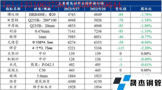 免責聲明:本網站(山東聊城晟杰無縫鋼管廠www.maturesexus.com)刊載的“建筑原材料周報(5.23-5.27)”等均源于網絡,版權歸原作者所有,且僅代表原作者觀點,本文所載信息僅供參考。轉載僅為學習與交流之目的,如無意中侵犯您的合法權益,請及時聯系刪除。本網站刊登此篇文章并不意味著本站贊同其觀點或證實其內容的真實性,我們不對其科學性、嚴肅性等作任何形式的保證。如果侵犯了您的版權,請盡快聯系我們予以撤銷,謝謝合作!